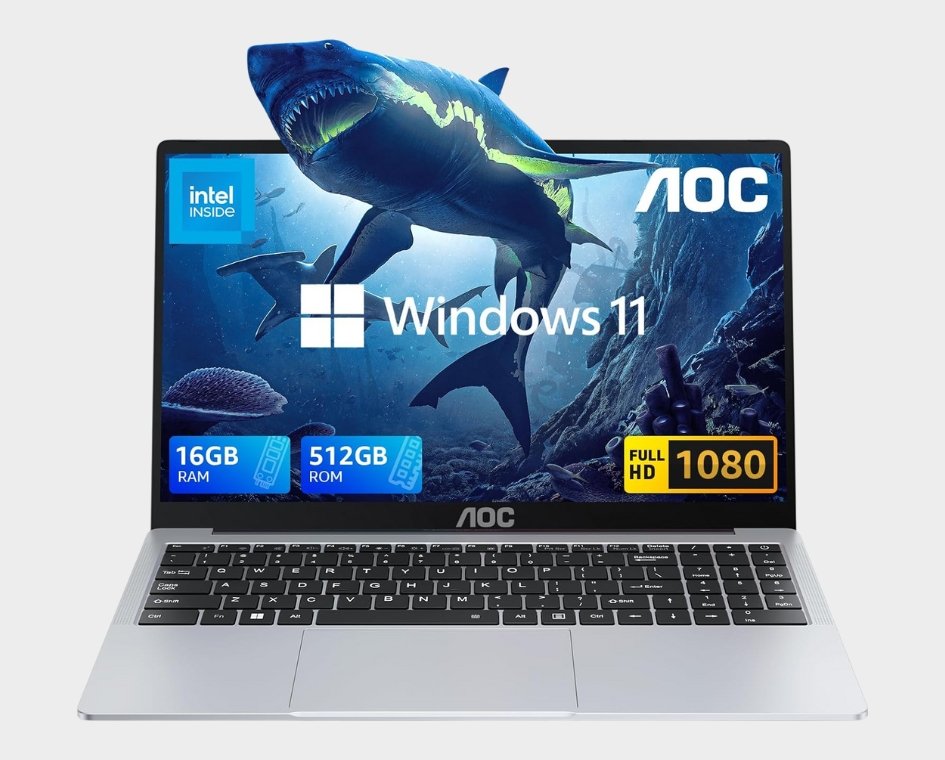 AOC Laptop, Laptop Computer with Intel Processor Twin Lake N150(Up to 3.6GHz) 16GB DDR4 512GB SSD 15.6 Inch FHD Premium Laptop Windows 11 Pro, Metal Shell, Type-C