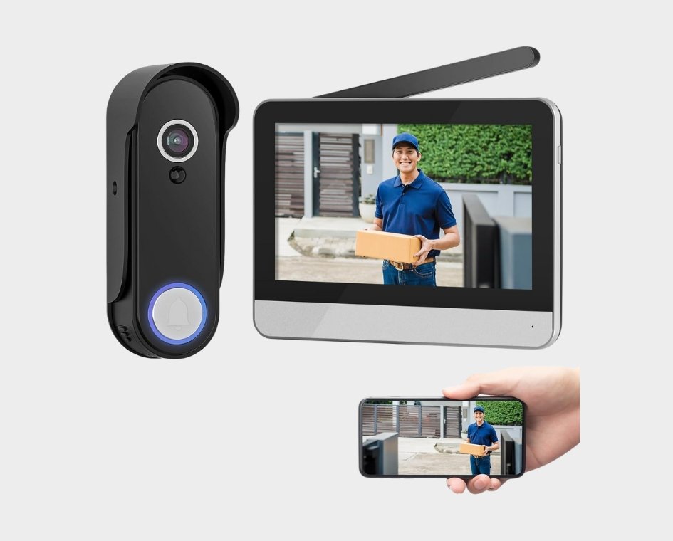 Wireless Smart Video Doorbell System,7″ Touchscreen Display,1080P Video Doorbell Camera with Motion Detection,2-Way Audio